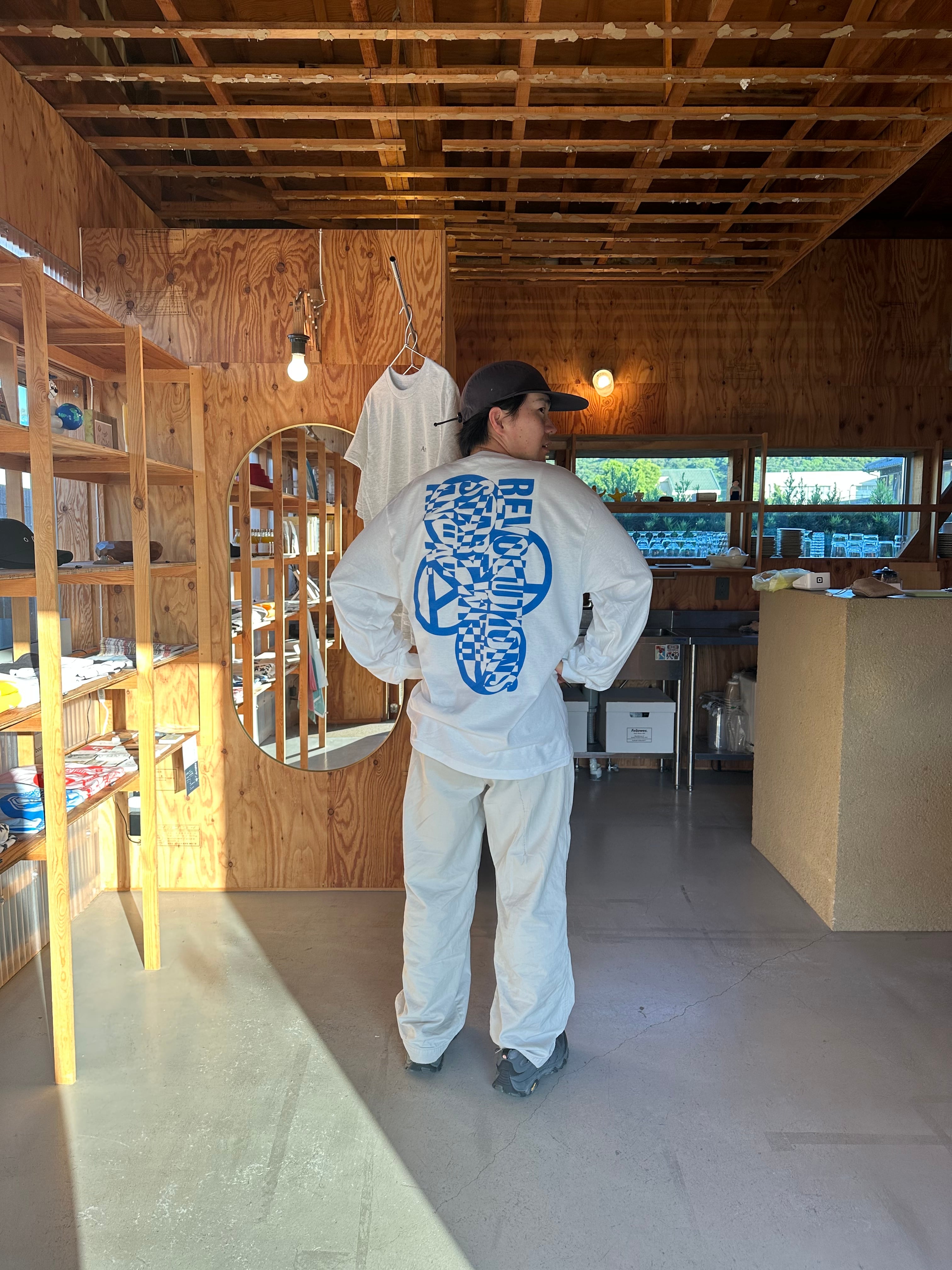 白ボディに青色プリント、ボディはアメリカンアパレル6ozです。