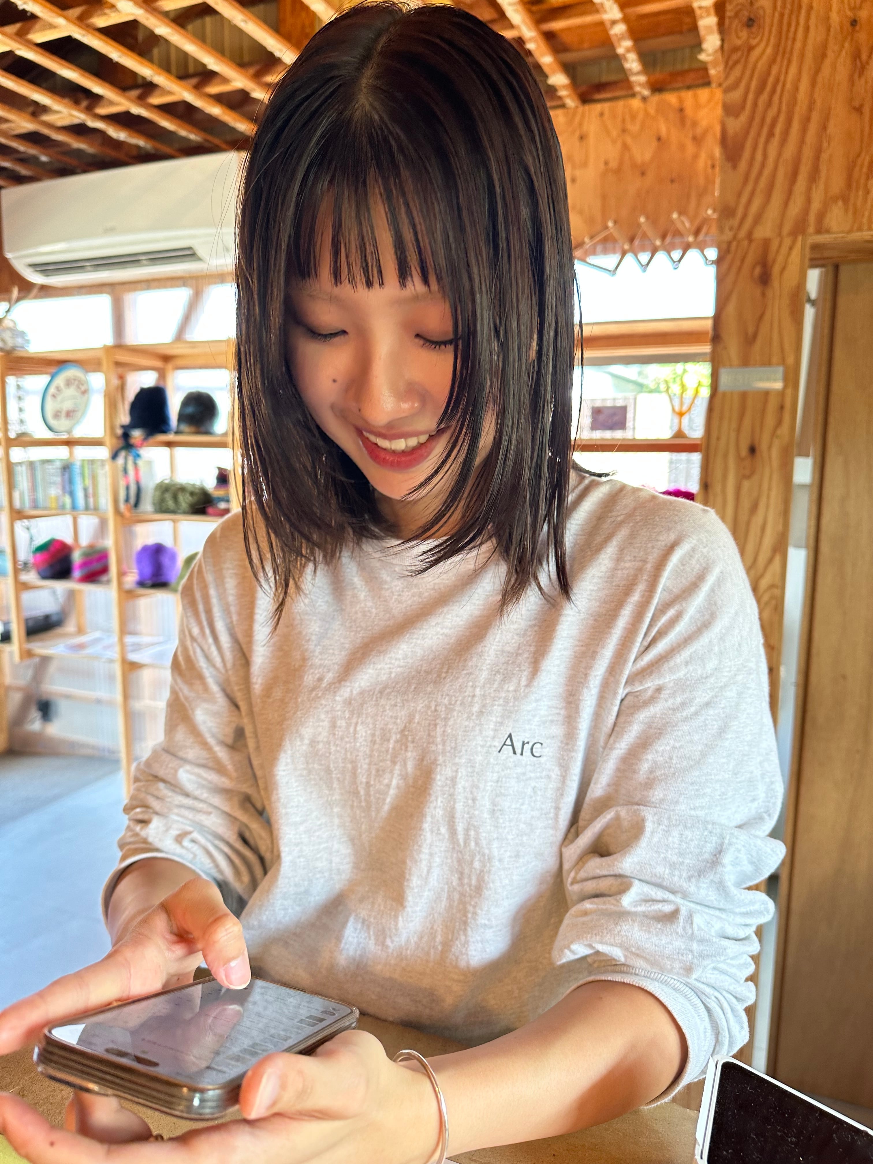 アッシュグレーのボディに左胸に黒に近いグレーでArcロゴ、バックはオンラインではご説明できないグラフィックをプリントしています。